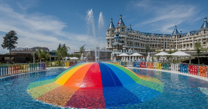 Facilitati hotel: Hotelul ofera oaspetilor sai urmatoarele facilitati: restaurant principal, 5 restaurante a la carte, 8 baruri, sauna, baie turceasca, centru SPA, centru fitness, boccia, programe de animatie, aerobic, piscina exterioara, piscina pentru adulti, piscina pentru copii, 5 tobogane pentru copii, 8 tobogane pentru adulti, piscina pentru bebelusi, piscina interioara pentru adulti si copii, sali de conferinta,