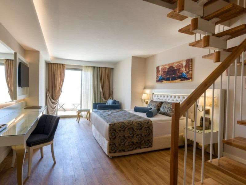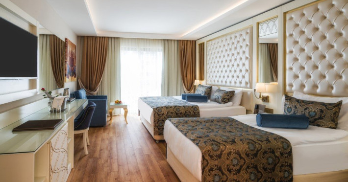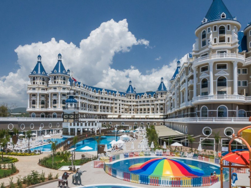 Descriere: Hotelul a fost deschis in anul 2016, este construit pe o suprafata de 37000 mp si dispune de 496 de camere.Localizare: Hotelul este situat la aproximativ 100 km distanta fata de aeroportul Antalya. Orasul Alanya se afla la aproximativ 25 de km, iar orasul Side la aproximativ 35 km, fata de hotel.