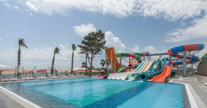 Pentru cei mici exista facilitati : piscina, 5 tobogane, loc de joaca, miniclub (4–12 ani), bona (contra cost).