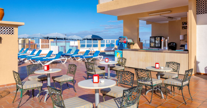 The hotel HC Hotel Magec is located 400 m from the nearest bars and restaurants. The old town is around 500 m away. Shops are right on your doorstep, a supermarket is around 150 m away. In the surrounding a disco (approx. 600 m away), a leisure park (approx. 1,2 km), a cinema (approx. 4 km) and a golf course (approx. 40 km) offer entertainment during the best time of the year. The beach at your holiday destination is patrolled by a lifeguard, pets and nudist bathing are allowed. The hotel is equipped with a 24h reception (check-in is possible around the clock), a lobby bar, Wi-Fi, a lift, a hairdresser, a jacuzzi, showers and changing rooms, a first aid kit, parking spaces as well as a TV lounge with satellite TV. In the outdoor area of the property you will find a seasonally open, heated pool, where sun loungers and sun umbrellas are available for free. There is also a children's pool. Furthermore, you can relax outdoors on the sun terrace. You can store your valuables in the safe (extra fee), and your luggage in the hotel`s storage roomn. For very young guests, kid`s chairs can be provided). To clean your clothes there are a laundry service (extra fee) and an ironing service. The rooms are cleaned. If necessary, you can contact the medical centre at any time (for a fee). Guests at the accommodation can get a wake-up call from the hotel personnel. For conventions and other business meetings, the hotel offers a conference area with a total of 100 seats as well as printer. If you want to explore the holiday region, you can use the car and motorbike rental service close to the hotel. Due to its barrier-free facilities , such as barrier-free entrances and wheelchair accessible rooms, the hotel is also suitable for wheelchair users (dimensions: lift door width: 0.80CM m). Catering As catering services the hotel offers all-inclusive, half board, full board and breakfast only. Breakfast (07-oct hrs) is offered from the buffet (extras on request). Lunch (13-15 hrs) and dinner (19-22 hrs) are also served from the buffet (extras on request and at extra cost). For the meals, there are a buffet restaurant with terrace and the cafeteria as well as the pool bar (open from oct-24). A picnic bench can be used by guests for self-catering. For dinner, guests are asked to wear appropriate clothing in the restaurant. Distances