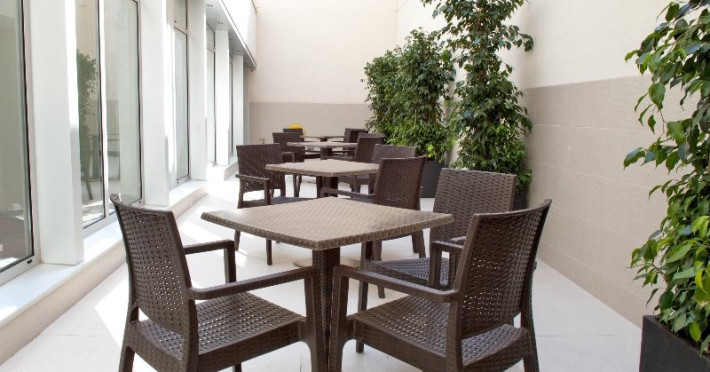 The HCC Lugano is a newly built hotel that stands out for its modernity and its many services. Located next to the Fira de Barcelona, you can also get closer to some of the most emblematic theaters in the city, which share avenue with the hotel. It offers a 24-hour reception and free Wi-Fi. Guests can enjoy a buffet breakfast in the Luganos café-bar. Non-smoking rooms are available for disabled guests. . HCC Lugano is located on Paral·lel Avenue, less than a 10-minute walk from the FIRA Exhibition Center in Plaza España and the nearby metro and train stations. . Cozy rooms where you can enjoy TV with satellite connection, free WIFI internet connection, air conditioning, heating, minibar, safe, work desk, 2 telephones with direct line.Datorita dinamicitatii domeniului disponibilitatea ofertelor se modifica de la un moment la altul. De aceea ofertele sunt valabile in limita locurilor disponibile. Agentia nu este responsabila pentru eventualele neconcordante care pot aparea intre informatiile privind tarifele si alte detalii din site si informatiile primite in agentie. In aceste cazuri vor avea prioritate, intotdeauna, informatiile primite in agentie.