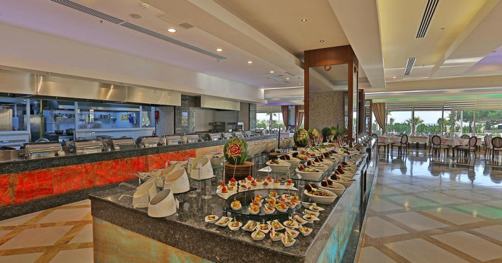 La Heaven Beach Resort & Spa oaspeții au la dispoziție 4 restaurante unde pot savura mâncăruri delicioase, în stil bufet sau à la carte. Preparate din bucătăria internațională și italiană sunt oferite zilnic la micul dejun, prânz și cină. Masa poate fi servită atât în interior, cît si în aer liber, pe terasă, în funcție de vreme. 7 baruri, dintre care unul la piscină, sunt disponibile cu o ofertă variată de băuturi răcoritoare și alcoolice. Pentru cei cu anumite nevoi de nutriție, Heaven Beach Resort & Spa oferă meniuri pentru diete speciale.