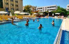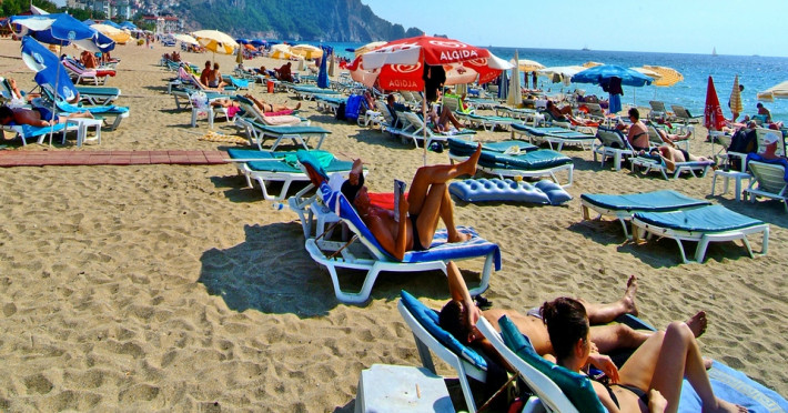 Hedef Kleopatra Golden Sun are acces imediat la o plajă cu nisip și pietriș. Pe plajă există șezlonguri și umbrele de plajă.