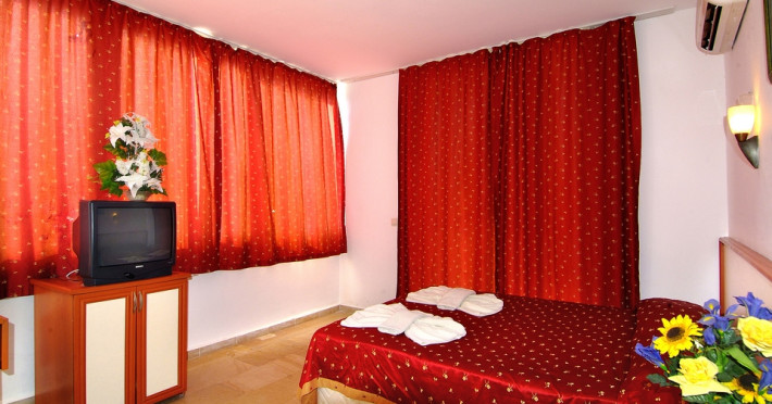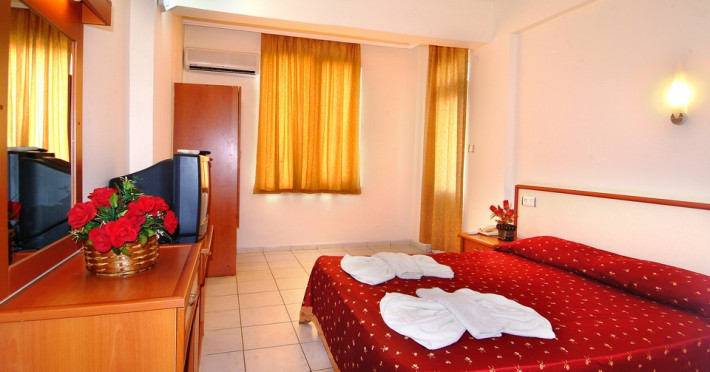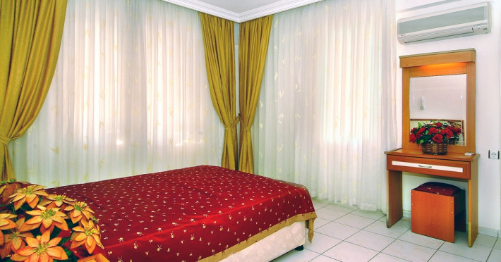 Sunt disponibile 242 camere. Camerele au balcon cu masă și scaune unde pot fi petrecute momente de relaxare. Fiecare cameră dispune de minibar. Camerele confortabile de la Hedef Kleopatra Golden Sun au pardoseală de gresie/ marmură, aer condiționat, Tv cu canale prin satelit și seif. În camere există baie cu cadă sau duș prevăzută cu foehn. Oaspeții au acces gratuit la serviciul Wi-fi în camere. Curățenia in cameră se face zilnic.