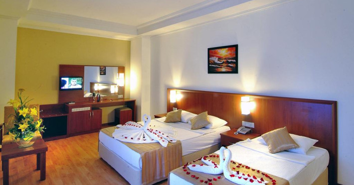 Sunt disponibile 762 camere. Oaspeții au la dispoziție serviciul de room service pentru a servi masa sau diverse băuturi. În camere există baie cu cadă sau duș prevăzută cu foehn. Camerele luminoase de la Hedef Resort & Spa sunt dotate cu parchet, aer condiționat, Tv cu canale prin satelit. Unele camere au balcon cu vedere la mare sau la piscină. Oaspeții au acces gratuit la serviciul Wi-fi în camere. Curățenia in cameră se face zilnic.
