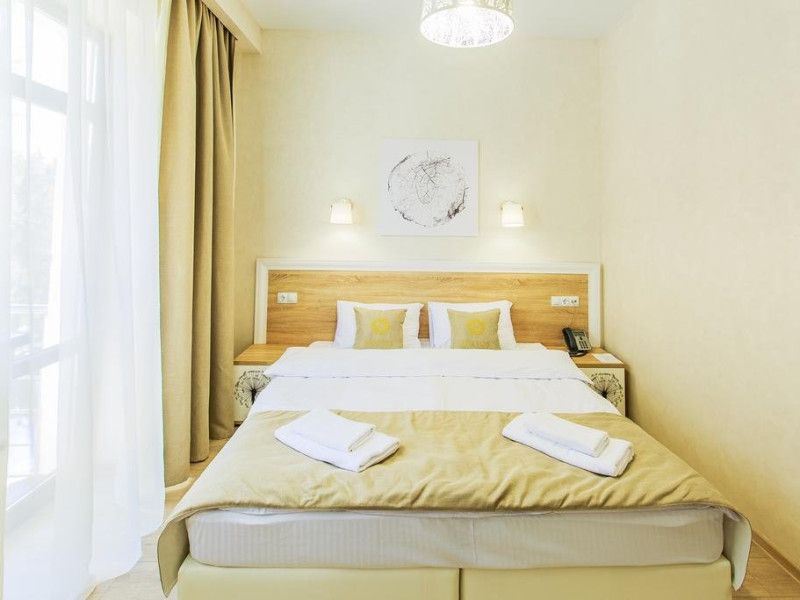 Dotari camere: 29 de camere dotate cu: TV, seif, minibar, internet Wi-Fi, halat, papuci de unica folosinta, uscator de par, articole de toaleta, baie cu dus. Camerele Confort sunt dotate cu o canapea, iar camerele Premium sunt compuse din 2 dormitoare, unul cu pat matrimonial si unul cu canapea extensibila.
