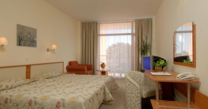 Hotelul Helios Spa este situat la doar 800 de metri de plaja publică, în mijlocul vechii păduri din Parcul Național Nisipurile de Aur, oferind o panoramă impresionantă către coasta Mării Negre. Acest complex arhitectural remarcabil este o expresie a eleganței și rafinamentului, îmbinând perfect confortul modern cu frumusețea naturală a împrejurimilor sale.Facilități hotel