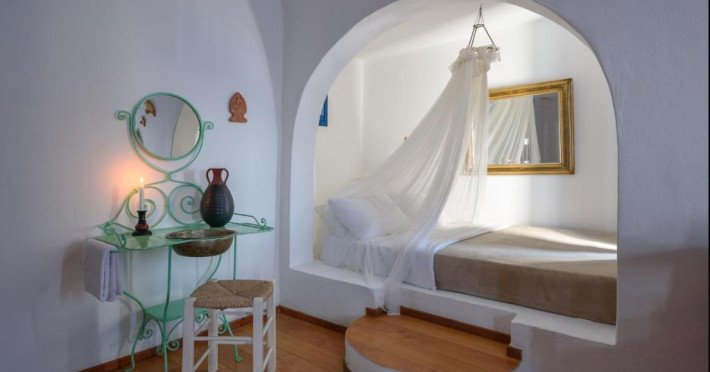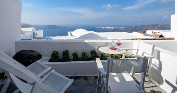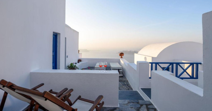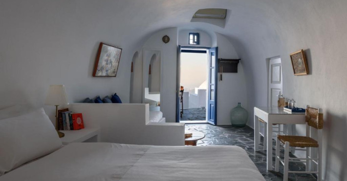 Situat in cel mai inalt punct al caldeirei, Heliotopos este un hotel tip boutique construit in stil traditional, cu cupole. Oferă camere decorate unic, cu un balcon privat cu vedere la vulcan.
