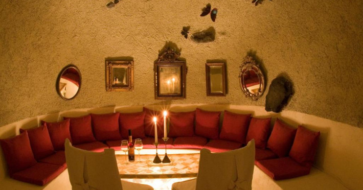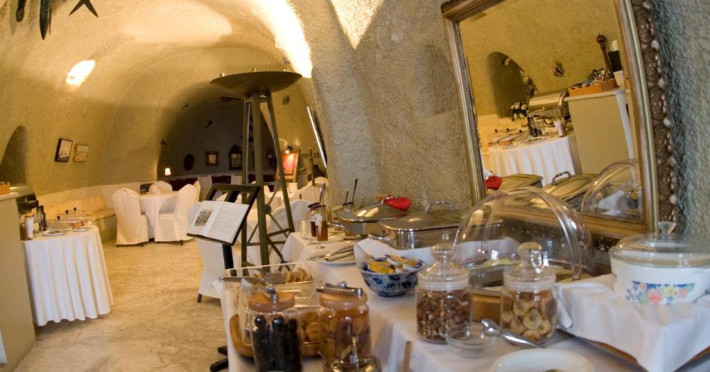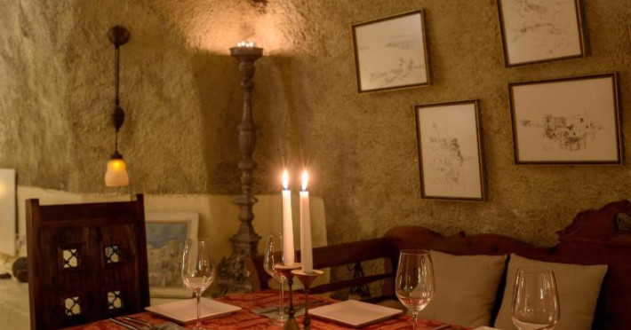 Incluzand specialităti de casă si paine proaspătă, micul dejun bogat tip bufet este servit in fiecare dimineată in pestera naturală si in curtea de langă aceasta. Seara puteti savura vinuri locale, cocktailuri si băuturi, precum si gustări, salate proaspete si preparate usoare in această pesteră naturală.