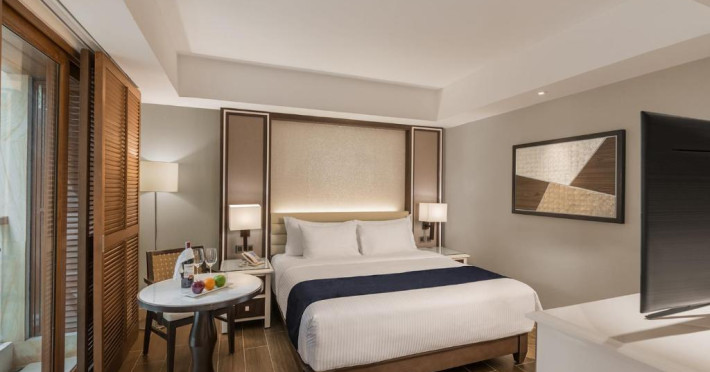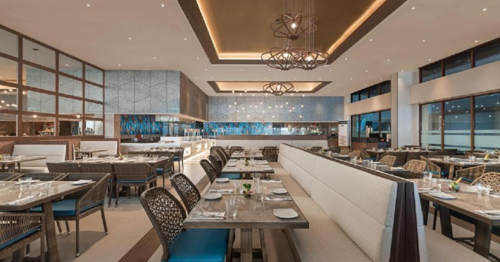 Micul dejun este disponibil zilnic la proprietate. Restaurantul Sapphire este deschis toată ziua și servește preparate din bucătăria filipineză intr-o ambianță modernă, in timp ce barul scufundat de la piscină servește cocktailuri și gustări după-amiaza.
