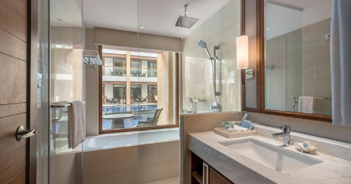 Camerele sunt dotate cu aer condiționat, TV LCD cu ecran plat cu canale prin cablu și minibar, iar băile private includ duș cu apă caldă și rece și uscător de păr. Fiecare cameră include o zonă de relaxare și un birou, precum și un fierbător electric. Anumite camere sunt echipate cu un hamac in interiorul unității, in timp ce alte camere au acces direct la piscină.