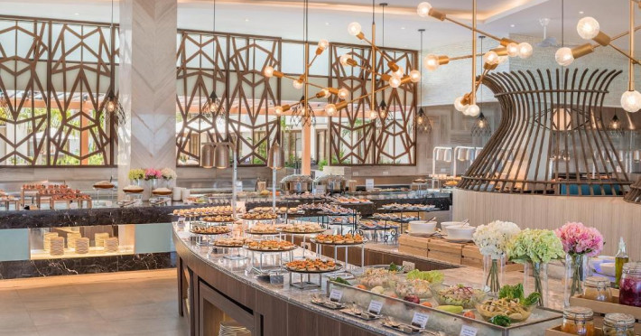 In fiecare dimineață, oaspeții pot savura micul dejun tip bufet servit in zona de mic dejun. Restaurantul Palm Tree servește, de asemenea, specialități locale și populare à la carte, oferind oaspeților vedere la mare.