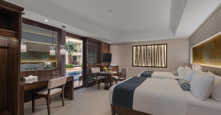 Avand interior si facilităti moderne, toate camerele sunt dotate cu aer conditionat si TV si sunt decorate in nuante neutre, intregind tematica legată de plajă. Unele camere au zonă de relaxare sau balcon, iar altele oferă acces direct la piscină, prin usa din spate. Băile private au dus sau cadă si bideu. Se asigură articole de toaletă gratuite.