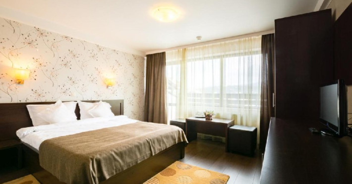 Apartamentele din cadrul Hotel Hera Predeal sunt decomandate, au suprafete cuprinse intre 70 si 80 mp si sunt formate din living cu canapea extensibila, dormitor cu pat matrimonial, baie cu cabina de dus si balcon. Dotarile apartamentului includ: 2 TV cu ecran plat, telefon, internet wireless, minifrigider, cafetiera, prosoape si halate pentru baie, uscator de par, produse de igiena, incalzire centralizata.