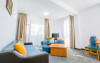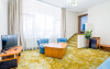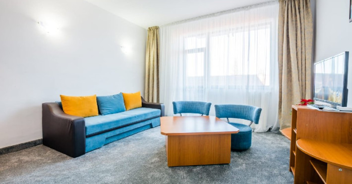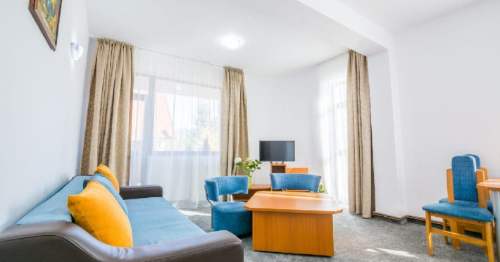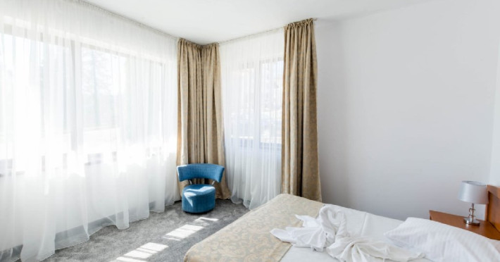 Apartamentele din cadrul Hotel Hera Predeal sunt decomandate, au suprafate cuprinse intre 70 si 80 mp si sunt formate din living cu canapea extensibila, dormitor cu pat matrimonial, baie cu cabina de dus si balcon. Dotarile apartamentului includ: 2 TV cu ecran plat, telefon, internet wireless, minifrigider, cafetiera, prosoape si halate pentru baie, uscator de par, produse de igiena, incalzire centralizata.