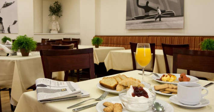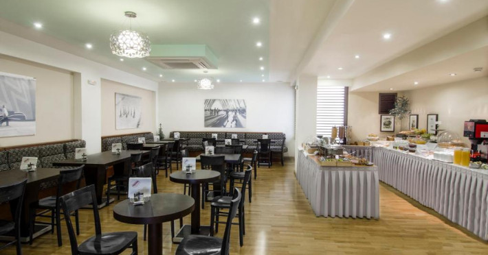 Hotelul Hermes oferă in fiecare dimineață un bufet bogat de mic dejun american. Oaspetii pot savura băuturi la barul din hol, unde există, de asemenea, TV cu ecran de 42 inch, cărti si jocuri de societate. In zona inconjurătoare veti găsi o varietate de taverne grecesti. Hotelul Hermes are o cameră de joacă pentru copii.