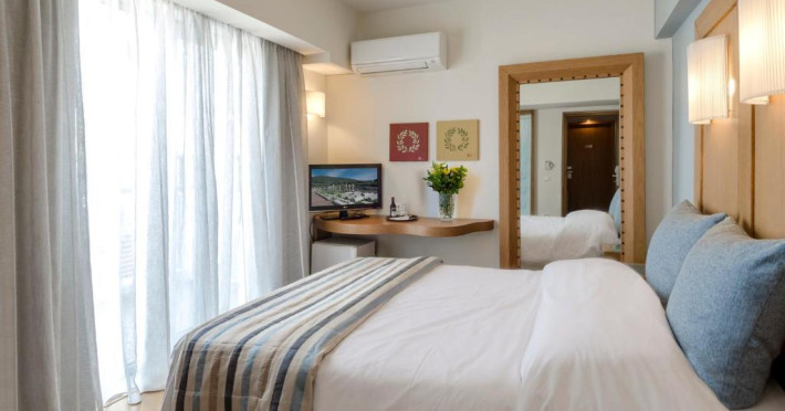 Hotelul Hermes este situat intr-o zonă linistită din Plaka, la numai 2 străzi de statia de metrou Syntagma si de strada comercială Ermou. Oferă lounge spatios si grădină pe acoperis. Wi-Fi gratuit este disponibil in intreaga clădire. Camerele sunt decorate in culori luminoase si oferă aer conditionat, mobilier modern si podea din lemn. Toate au TV prin satelit, minifrigider si seif. Baia cu finisaje din marmură include articole de toaletă gratuite si uscător de păr. Unele camere au balcon, iar altele oferă fereastră mare.