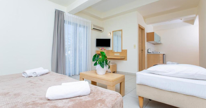 Hermes Malia se află in Malia, la 1,1 km de plajele Ikaros și Kernos și la 1,1 km de plaja Central Malia. Oferă cazare cu WiFi gratuit, aer condiționat, o piscină in aer liber sezonieră și un bar.