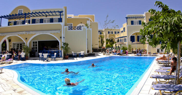 Hotelul este situat la 250 m de plaja, 7 km de Fira, 4 km de aeroport, 12 km de portul Athinios.