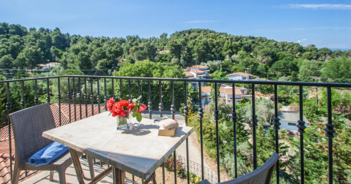 Este situat in apropierea plajei cu nisip Vromolimnos, la cca 300m de cel mai apropiat restaurant si la 7km distanta de orasul Skiathos. Aeroportul este la cca 9 km de micuta statiune.