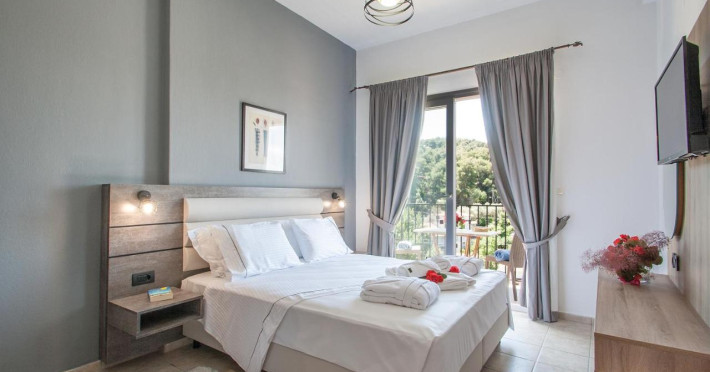 Inconjurat de padure si asezat la cativa pasi de plaja, complexul de apartamente Hermes, a fost recent renovat in intregime. Modern si cu diverse facilitati pentru oaspeti, reprezinta una dintre cele mai bune variante de cazare de pe insula.Localizare