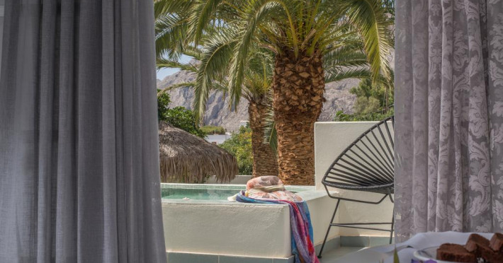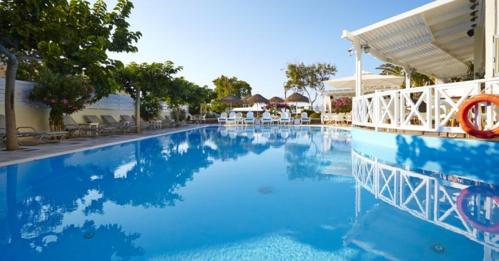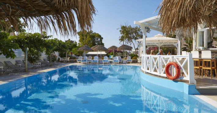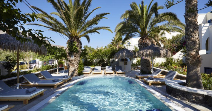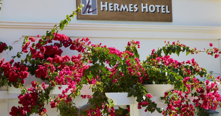 Hermes este o proprietate de 4 stele situată în Kamari (Santorini) care oferă camere cu vedere la mare, un restaurant, o piscină în aer liber și o terasă cu șezlonguri și umbrele de soare. Facilitățile de la Hermes includ și sală de fitness. Proprietatea are, de asemenea, servicii de recepție cu program non - stop, concierge și închirieri auto. Se oferă acces gratuit la internet Wi-fi în spațiile publice. Parcarea este posibilă pe stradă, în imediata apropiere a proprietății.