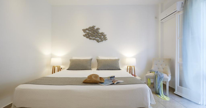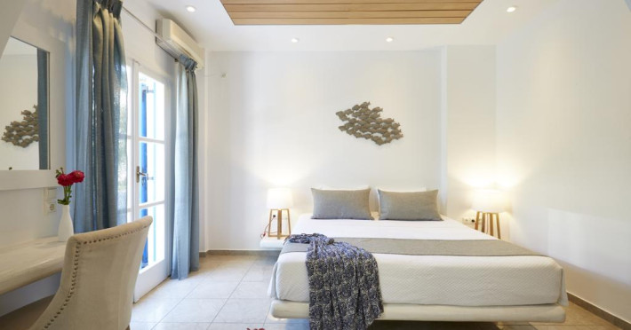 Sunt disponibile 44 camere. Unele camere au balcon cu vedere la mare sau la grădină. Camerele luminoase de la Hermes sunt dotate cu aer condiționat, Tv și seif. În camere există baie cu cadă sau duș ce are în dotare foehn și articole de toaletă gratuite. Fiecare cameră dispune de minibar. Oaspeții pot solicita serviciul de room service pentru a servi masa sau diverse băuturi. Oaspeții au acces gratuit la serviciul Wi-fi în camere. Curățenia in cameră se face zilnic. Proprietatea oferă camere pentru nefumători.