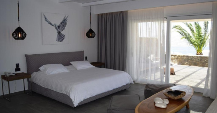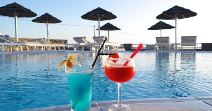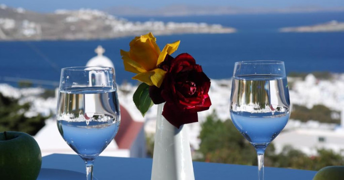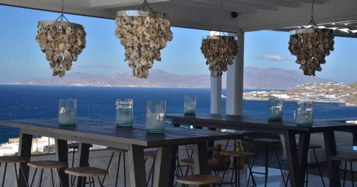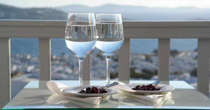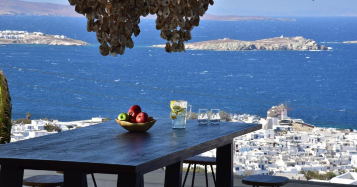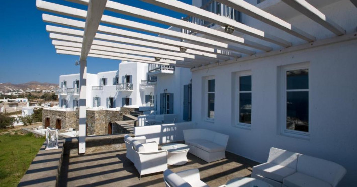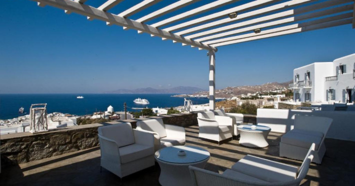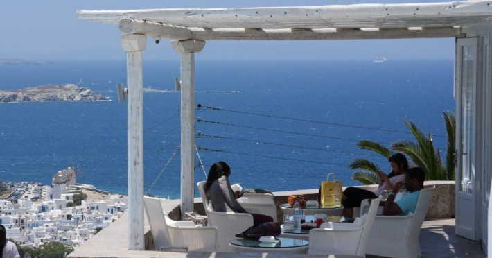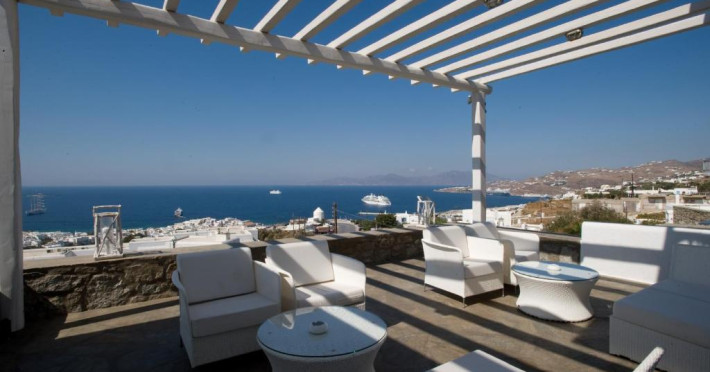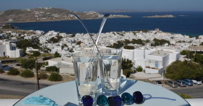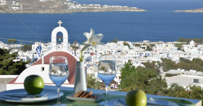 Oaspeții se pot bucura de mic dejun bufet servit pe terasa cu vedere panoramică, iar zona de lounge oferă cocktailuri rafinate. Centrul animat al orașului Mykonos și celebrele mori de vant se află la doar cateva minute de mers pe jos, făcand din Hermes o bază excelentă pentru explorarea insulei.