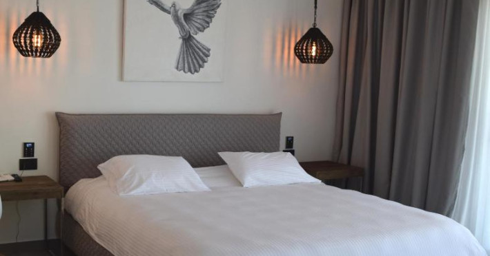Camerele luminoase sunt decorate in nuanțe mediteraneene și dispun de balcoane private. Piscina infinity cu șezlonguri și bar reprezintă punctul focal al proprietății, fiind locul ideal pentru relaxare cu vedere spre mare și port.