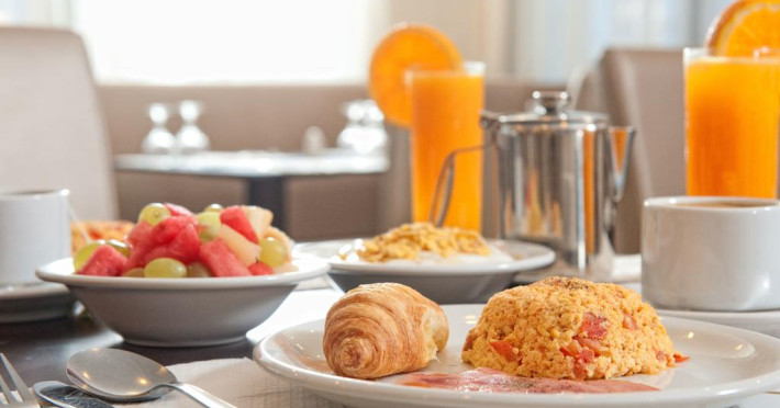 La Heronissos Hotel oaspeții au la dispoziție un restaurant care servește mâncare în stil bufet. Preparate din bucătăria locală și internațională așteaptă să fie degustate în fiecare zi la micul dejun, prânz și cină. Masa poate fi servită atât în interior, cît si în aer liber, pe terasă, în funcție de vreme. Oaspeţii pot avea diverse băuturi răcoritoare sau alcoolice la bar. Pentru cei cu anumite nevoi de nutriție, Heronissos Hotel oferă meniuri pentru diete speciale.