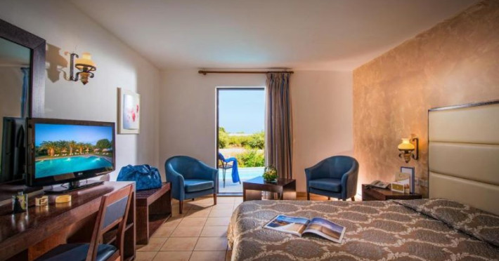 Hersonissos Maris offers a variety of 170 standard rooms, 26 pool sharing rooms with direct access to a shared swimming pool and 8 suites in a maisonette style with private swimming pool. During the afternoon, our guests can relax at the lounge bar with a great view of Hersonissos gulf, or during the day at Thalassa snack bar which is located by the sea. A charmful A’ class hotel by the sea, which consists of a main building, several bungalows and suites. It’s special architecture achieves a Cretan style with elements of the Greek islands in their rustic form. It is located in a very quiet area, 25 klm away from the city of Heraklion and only 15 minutes walking to the center of HersonissosDescriere hotel