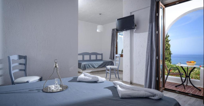 Aceasta camera decorata elegant, cu aer conditionat, balcon cu vedere directa la mare, frigider, TV prin satelit, seif. Baia privata este dotata cu dus sau cada si uscator de par.