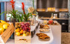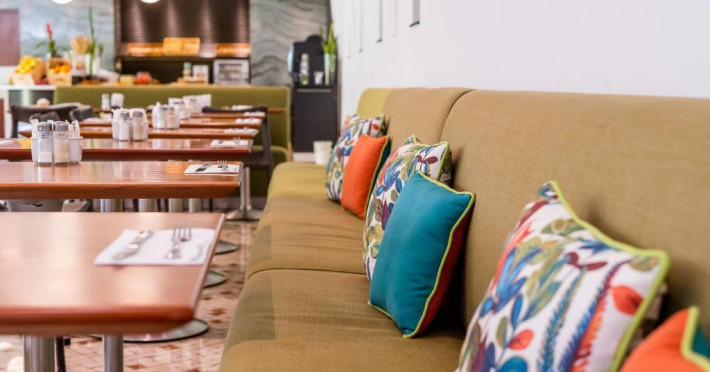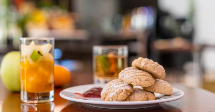 Cafeneaua servește o varietate de gustări și băuturi. Oaspeții pot savura in fiecare dimineață un mic dejun proaspăt preparat și cafea de la un aparat Nespresso.