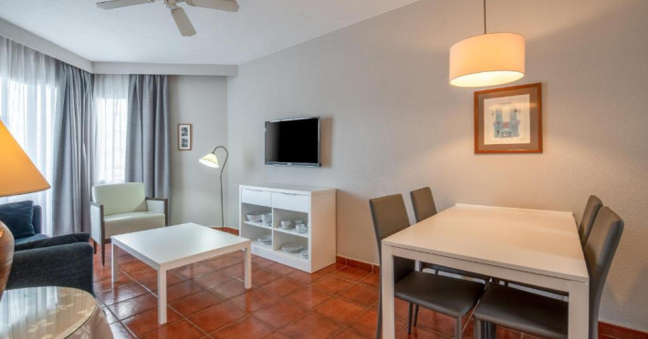 Camerele luminoase de la Hg Tenerife Sur sunt dotate cu parchet, aer condiționat, Tv cu canale prin satelit și seif. Fiecare cameră dispune de mașină pentru preparare cafea sau ceai și fierbător În camere există baie cu cadă sau duș prevăzută cu foehn. Oaspeții au acces la serviciul Wi-fi în camere contra cost. Unele camere au balcon cu vedere la piscină. Există camere care au zonă de relaxare cu canapea, ceea ce asigură un plus de confort și răsfăț. Există unități de cazare care au chicinetă utilată cu frigider, plită de gătit și ustensile de bucătărie. De asemenea, sunt disponibile o zonă de luat masa și un cuptor cu microunde.