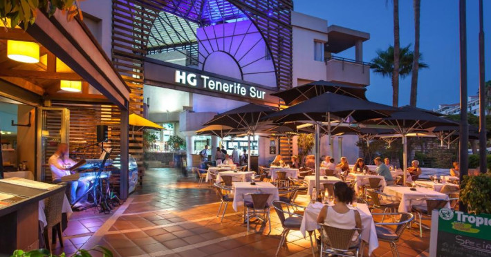 Hg Tenerife Sur pune la dispoziția oaspeților un restaurant care servește mâncare à la carte. Preparate din bucătăria internațională așteaptă să fie degustate în fiecare zi. Masa poate fi servită atât în interior, cît si în aer liber, pe terasă, în funcție de vreme. Oaspeţii pot avea diverse băuturi răcoritoare sau alcoolice la bar. Oaspeţii îşi pot pregăti micul dejun şi alte mese şi le pot savura chiar pe balcon.