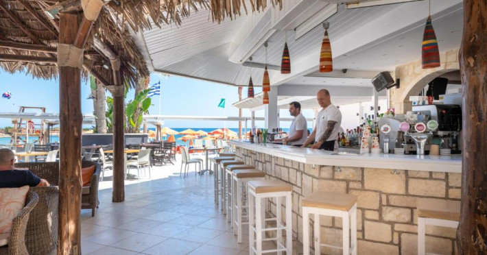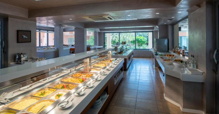 La High Beach oaspeții au la dispoziție 2 restaurante unde pot savura mâncăruri delicioase, în stil bufet sau à la carte. Preparate din bucătăria grecească și internațională așteaptă să fie degustate în fiecare zi. Masa poate fi servită atât în interior, cît si în aer liber, pe terasă, în funcție de vreme. 3 baruri, dintre care unul la piscină, sunt disponibile cu o ofertă variată de băuturi răcoritoare și alcoolice. Pentru cei cu anumite nevoi de nutriție, High Beach oferă meniuri pentru diete speciale.