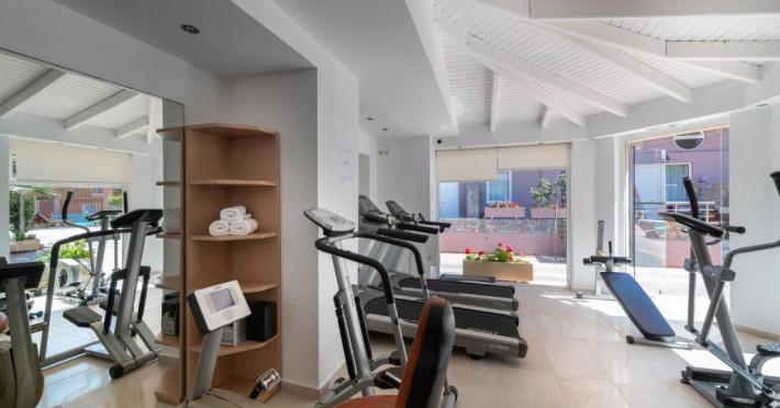O sală de fitness cu echipamente necesare pentru o gamă variată de exerciții fizice este la dispoziția celor interesați.