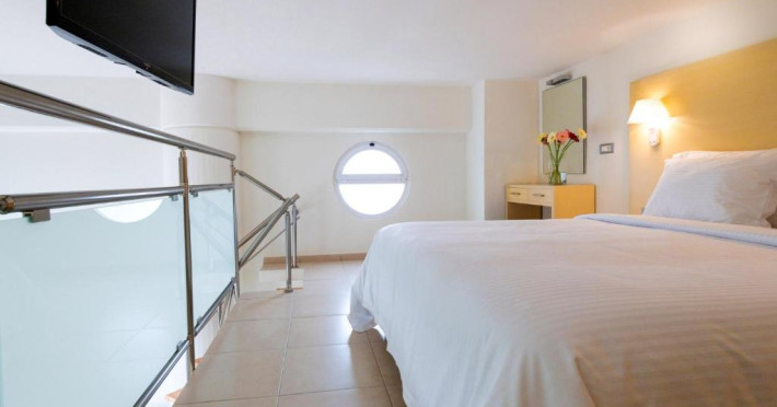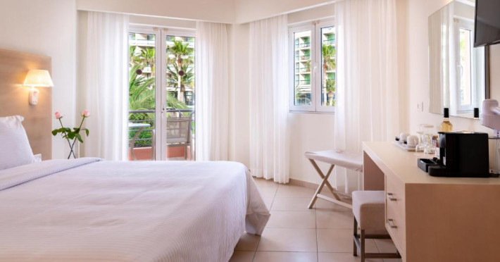 Camerele confortabile de la High Beach au pardoseală de gresie/ marmură, aer condiționat, Tv cu canale prin satelit și seif. Fiecare cameră dispune de un aparat pentru preparare cafea sau ceai, cană-fierbător și minibar. Oaspeții pot solicita serviciul de room service pentru a servi masa sau diverse băuturi. Oaspeții au acces gratuit la serviciul Wi-fi în camere. Camerele au balcon cu vedere la mare, la piscină sau la grădină. În camere există baie cu cadă sau duș ce are în dotare foehn și articole de toaletă gratuite. Curățenia in cameră se face zilnic. Proprietatea oferă camere pentru familie cu o suprafață mai mare și un număr mai mare de paturi față de cele standard.