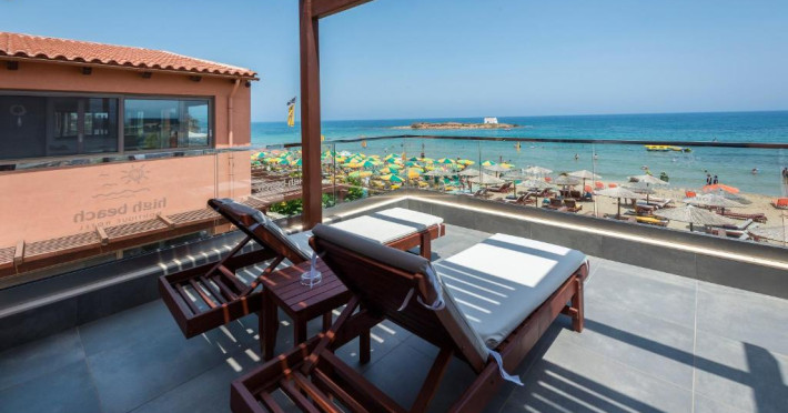 High Beach este o proprietate de 4 stele care se află pe malul mării, în Malia (Creta-Heraklion), și oferă piscină în aer liber cu șezlonguri și umbrele de soare, precum și centru spa/wellness care asigură servicii pentru un sejur extrem de relaxant. Facilitățile de la High Beach includ și sală de fitness. Pentru petrecerea timpului liber oaspeții au la dispoziție activități de agrement pe timpul zilei și programe de divertisment seara. Proprietatea are, de asemenea, servicii de recepție cu program non - stop și concierge. Se oferă acces gratuit la internet Wi-fi în spațiile publice. Parcarea este disponibilă la proprietate gratuit.