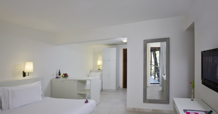 Sunt disponibile 330 camere. Unele camere au balcon cu vedere la mare, unde oaspeții pot admira apusul sau răsăritul soarelui. Camerele confortabile de la Hillside Beach Club au pardoseală de gresie/ marmură, aer condiționat, Tv cu canale prin satelit și seif. În camere există baie cu cadă sau duș prevăzută cu foehn. Oaspeții au acces gratuit la serviciul Wi-fi în camere. Curățenia in cameră se face zilnic.