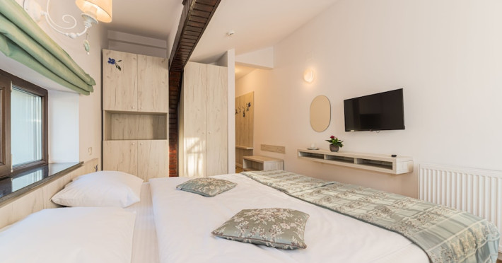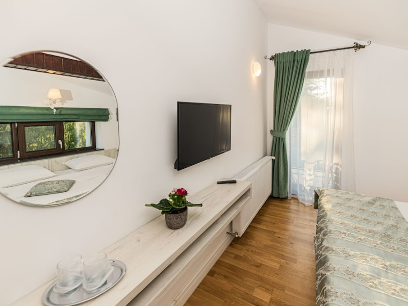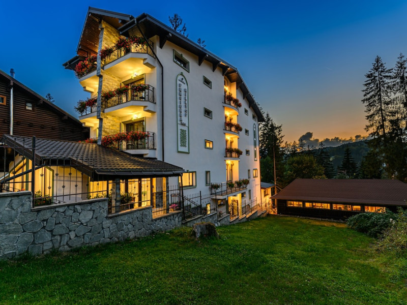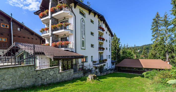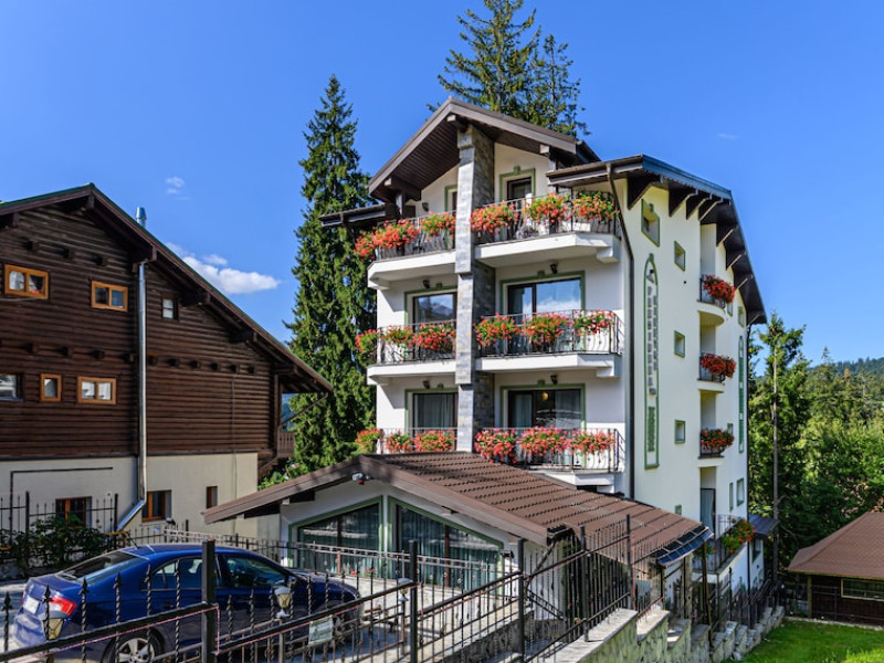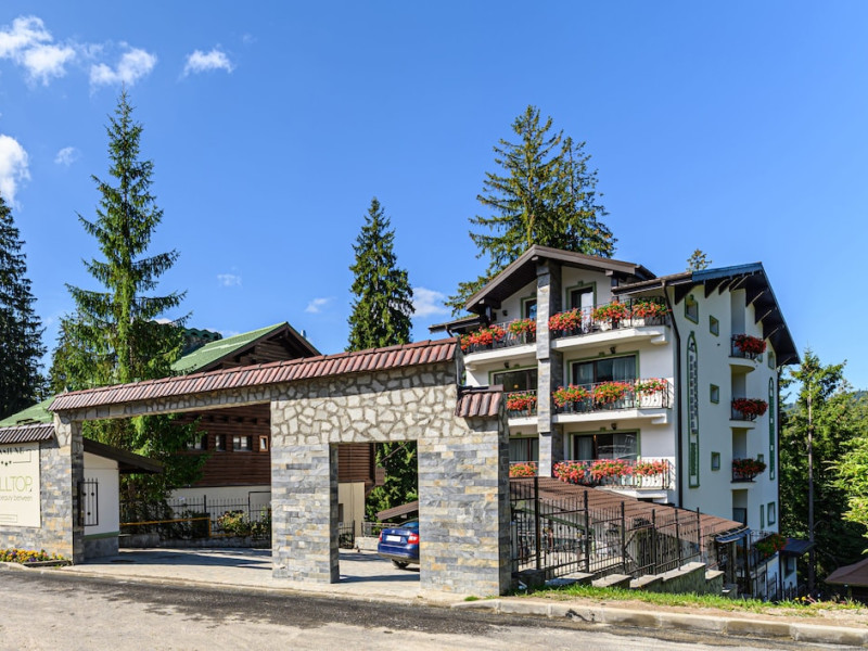 Property Desc:Property Location With a stay at Pensiunea Hilltop in Predeal, youll be within a 5-minute drive of Predeal Ski Area and Predeal Ski Resort. This pension is 20.6 mi (33.1 km) from Bran Castle and 21 mi (33.8 km) from Poiana Brasov Ski Resort.Rooms Stay in one of 15 guestrooms featuring flat-screen televisions. Rooms have private balconies. Complimentary wireless internet access keeps you connected, and cable programming is available for your entertainment. Bathrooms feature showers, complimentary toiletries, and hair dryers.Amenities Enjoy recreation amenities such as a sauna or take in the view from a garden.Business, Other Amenities The front desk is staffed during limited hours. Free self parking is available onsite.Attractions Distances are displayed to the nearest 0.1 mile and kilometer. Predeal Ski Area - 1 km / 0.6 mi Predeal Ski Resort - 2.9 km / 1.8 mi Cantacuzino Castle - 12.9 km / 8 mi Busteni - Babele - 12.9 km / 8 mi Telegondola - 13 km / 8.1 mi Cheile RâÈnoavei - 15.6 km / 9.7 mi Urlatoarea Waterfall - 15.8 km / 9.8 mi Bucegi National Park - 18.8 km / 11.7 mi The Sinaia Casino - 19.7 km / 12.2 mi Parc Aventura Brasov - 20 km / 12.4 mi Rasnov Fortress - 20.1 km / 12.5 mi Sinaia Monastery - 20.4 km / 12.7 mi Sinaia - Cota 1400 - 21.5 km / 13.3 mi PeliÅor Palace - 21.8 km / 13.5 mi PeleÈ Castle - 22 km / 13.7 mi The nearest major airport is BraÈov-Ghimbav Intl. Airport (GHV) - 40.1 km / 24.9 miHouse RulesChildren welcomeNo petsNo smokingSpoken LanguagesEnglishRomanianKnow Before You Go: Up to 2 children 7 years old and younger stay free when occupying the parent or guardians room, using existing bedding. This property advises that enhanced cleaning and guest safety measures are currently in place.Disinfectant is used to clean the property; commonly-touched surfaces are cleaned with disinfectant between stays; bed sheets and towels are laundered at a temperature of at least 60°C/140°F.Social distancing measures are in place; staff at the property wear personal protective equipment; guests are provided with hand sanitizer; cashless payment methods are available for all transactions; masks are required in public areas. Fees: Rollaway bed fee: RON 60.0 per night The above list may not be comprehensive. Fees and deposits may not include tax and are subject to change. Checkin Instructions: Extra-person charges may apply and vary depending on property policyGovernment-issued photo identification and a credit card, debit card, or cash deposit may be required at check-in for incidental chargesSpecial requests are subject to availability upon check-in and may incur additional charges; special requests cannot be guaranteedGuests must contact this property in advance to reserve rollaway/extra bedsThis property accepts credit cardsCashless transactions are availableSafety features at this property include a fire extinguisher Special Checkin Instructions: The front desk is open daily from 7:00 AM - 10:00 PM. Front desk staff will greet guests on arrival.Checkin Time: 2:00 PMCheckin End Time: 10:00 PMCheckin Minimum Age: 18Checkout Time: 11:30 AMDatorita dinamicitatii domeniului disponibilitatea ofertelor se modifica de la un moment la altul. De aceea ofertele sunt valabile in limita locurilor disponibile. Agentia nu este responsabila pentru eventualele neconcordante care pot aparea intre informatiile privind tarifele si alte detalii din site si informatiile primite in agentie. In aceste cazuri vor avea prioritate, intotdeauna, informatiile primite in agentie.