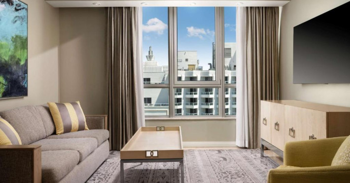 Toate camerele sunt dotate cu TV cu ecran plat. Suitele spațioase de la South Beach Bentley Hilton au mobilier modern, inclusiv in bucătărie sau chicinetă, si TV cu ecran plat. Băile sunt private.