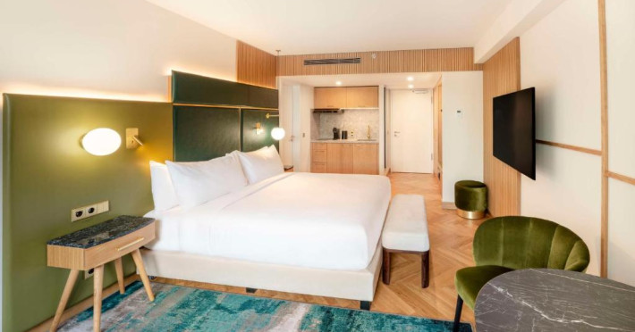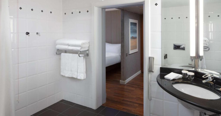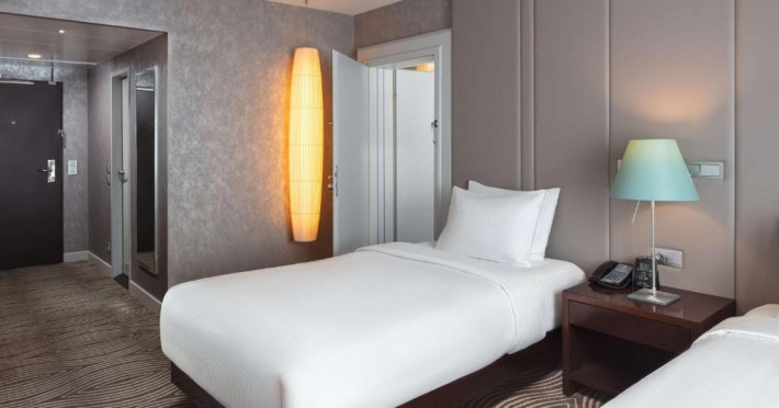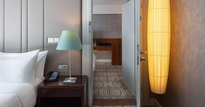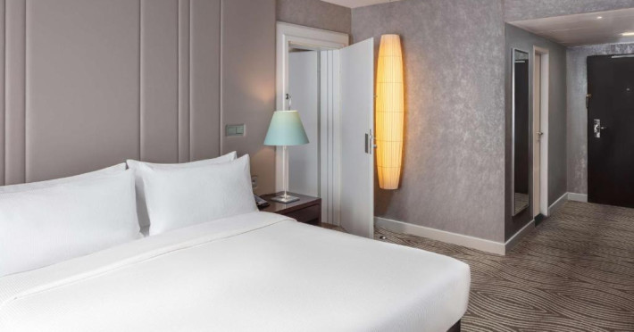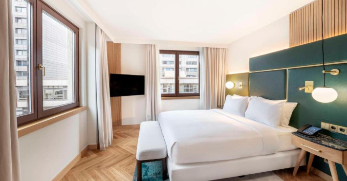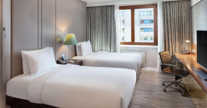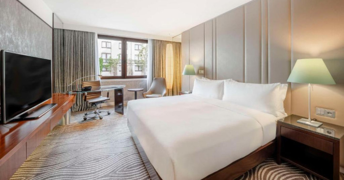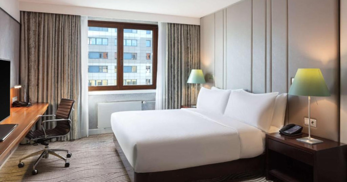 Decorate in culori calde, camerele elegante de la Hilton Berlin sunt dotate cu TV cu ecran plat, minibar, facilități pentru prepararea de ceai/cafea și cadă cu duș. Unele camere oferă acces la Executive Lounge de 360 m², care include mic dejun gratuit, WiFi, gustări și băuturi.