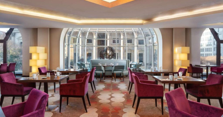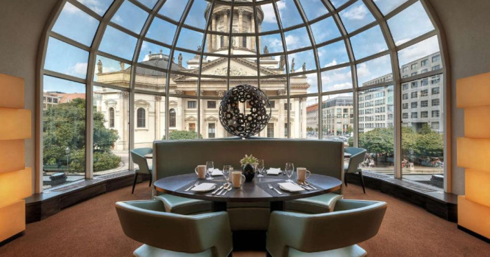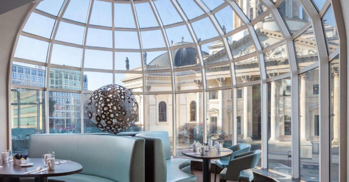 Acest hotel situat central pe piata istorică Gendarmenmarkt din Berlin oferă camere, un centru spa exclusivist si 2 restaurante cu vedere uimitoare la Catedrala Germană. O terasă frumoasă cu scaune este situată direct in piață.