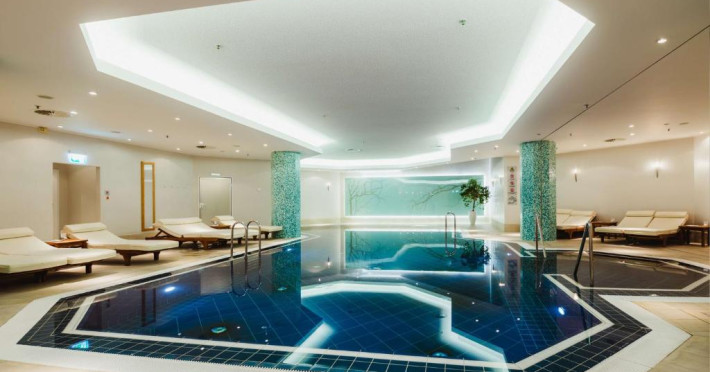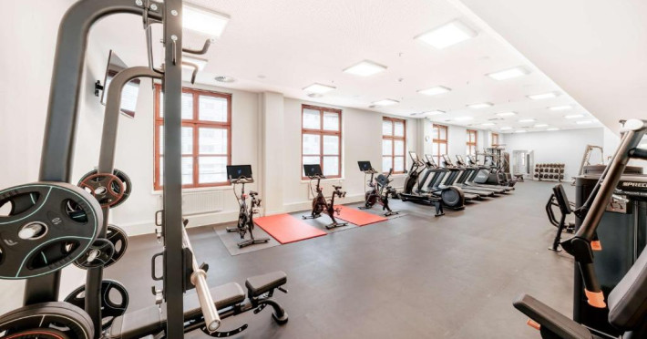 Relaxați-vă in clubul de sănătate LivingWell Berlin de 800 m², cu un centru de fitness de top modern, o piscină interioară, saună și baie de aburi (se aplică taxe pentru saună).