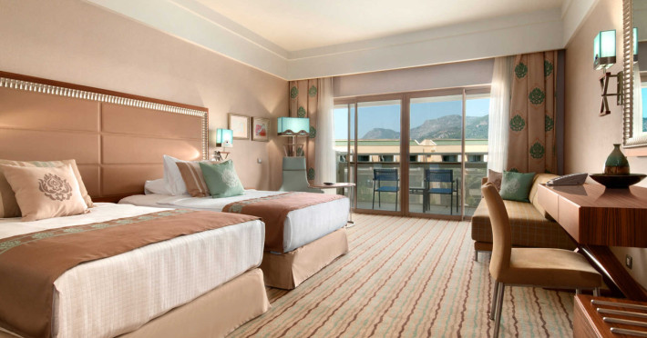 Hilton Dalaman Sarigerme oferă camere elegante, amenajate modern. Fiecare cameră are TV LCD, aer condiţionat şi balcon. Unele camere au vedere la mare sau la munte.