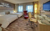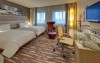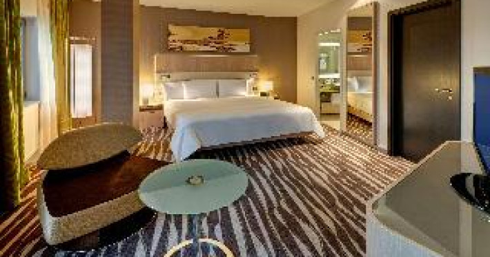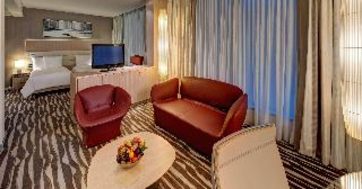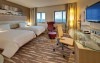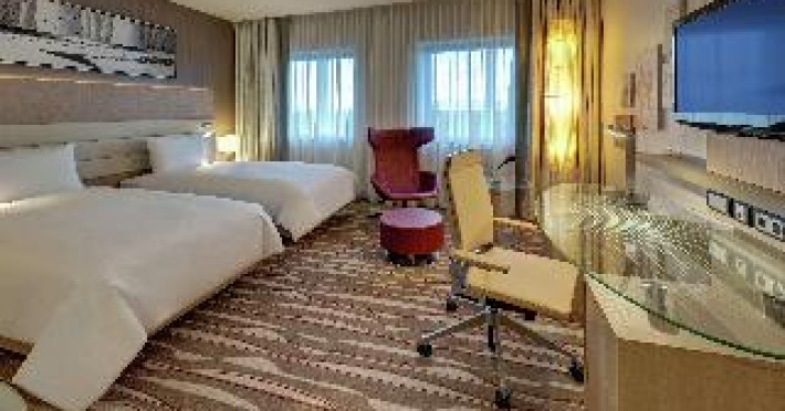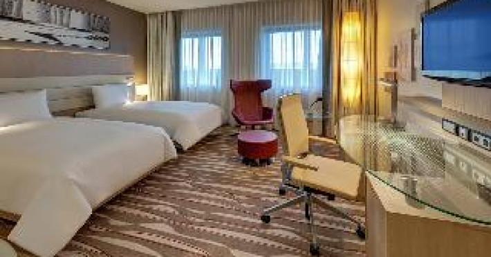 Located in the iconic THE SQUAIRE building, the Hilton Frankfurt Airport hotel is situated directly above the ICE railway station and is only 15 minutes from downtown Frankfurt. This unique Frankfurt hotel has direct pedestrian access via skywalk to Terminal 1 (T1) at Frankfurt Airport as well as a connection to the intersection of the A3 and A5 motorways. All of the tastefully decorated Guest Rooms and Suites in this Frankfurt hotel feature sound-proof windows, an LCD TV and a work area with ergonomic desk chairs. Hold a conference in one of 10 meeting rooms or book our grand Ballroom for up to 570 guests. A 24-hour business center with the latest in audiovisual equipment is available and wireless internet access is available throughout this Frankfurt Airport hotel. Sip cocktails in apos;The Fifth, Lounge amp; Barapos; and savor international and local specialties in our all-day dining restaurant apos;Riseapos;. Work out in the 24-hour Fitness Center by Precor® or unwind in the sauna. Visit the Alte Oper concert hall, the historic city hall Römer and the Goethehaus - birthplace of the famous German writer, Goethe, or attend a concert or sports event at the nearby Festhalle and Commerzbank Arena. Located in the iconic THE SQUAIRE building, the Hilton Frankfurt Airport hotel is situated directly above the ICE railway station and is only 15 minutes from downtown Frankfurt. This unique Frankfurt hotel has direct pedestrian access via skywalk to Terminal 1 (T1) at Frankfurt Airport as well as a connection to the intersection of the A3 and A5 motorways. All of the tastefully decorated Guest Rooms and Suites in this Frankfurt hotel feature sound-proof windows, an LCD TV and a work area with ergonomic desk chairs. Hold a conference in one of 10 meeting rooms or book our grand Ballroom for up to 570 guests. A 24-hour business center with the latest in audiovisual equipment is available and wireless internet access is available throughout this Frankfurt Airport hotel. Sip cocktails in apos;The Fifth, Lounge amp; Barapos; and savor international and local specialties in our all-day dining restaurant apos;Riseapos;. Work out in the 24-hour Fitness Center by Precor® or unwind in the sauna. Visit the Alte Oper concert hall, the historic city hall Römer and the Goethehaus - birthplace of the famous German writer, Goethe, or attend a concert or sports event at the nearby Festhalle and Commerzbank Arena.Datorita dinamicitatii domeniului disponibilitatea ofertelor se modifica de la un moment la altul. De aceea ofertele sunt valabile in limita locurilor disponibile. Agentia nu este responsabila pentru eventualele neconcordante care pot aparea intre informatiile privind tarifele si alte detalii din site si informatiile primite in agentie. In aceste cazuri vor avea prioritate, intotdeauna, informatiile primite in agentie.