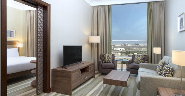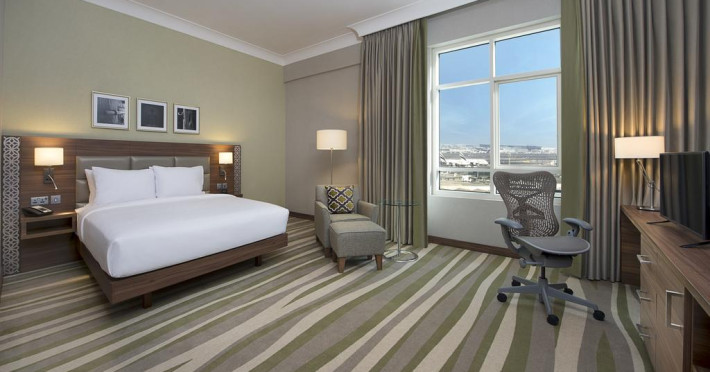 Fiecare cameră dispune de minibar și cană-fierbător. Oaspeții pot solicita serviciul de room service pentru a servi masa sau diverse băuturi. Unele camere au vedere la oraș. Camerele luminoase de la Hilton Garden Inn Dubai Al Muraqabat sunt dotate cu mochetă, aer condiționat, Tv cu canale prin satelit și seif. În camere există baie cu cadă sau duș ce are în dotare foehn și articole de toaletă gratuite. Oaspeții au acces gratuit la serviciul Wi-fi în camere. Curățenia in cameră se face zilnic. Toate camerele spațioase de la Hilton Garden Inn Dubai Al Muraqabat au zonă de relaxare cu canapea, ceea ce oferă un plus de confort. De asemenea, este disponibilă o zonă de luat masa. Proprietatea oferă camere pentru familie cu o suprafață mai mare și un număr mai mare de paturi față de cele standard. Se pot rezerva de asemenea camere pentru nefumători.