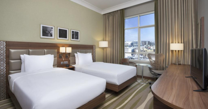 Hilton Garden Inn Dubai Al Muraqabat este o proprietate de 4 stele situată în Dubai care oferă un restaurant și o piscină în aer liber cu șezlonguri și umbrele de soare. Facilitățile de la Hilton Garden Inn Dubai Al Muraqabat includ sală de fitness și business center. Proprietatea are, de asemenea, servicii de recepție cu program non - stop, concierge și închirieri auto. Se oferă acces gratuit la internet Wi-fi în spațiile publice. Parcarea este disponibilă la proprietate gratuit.