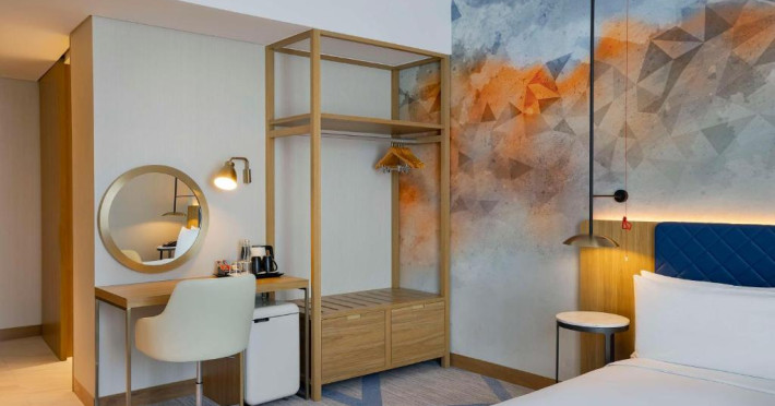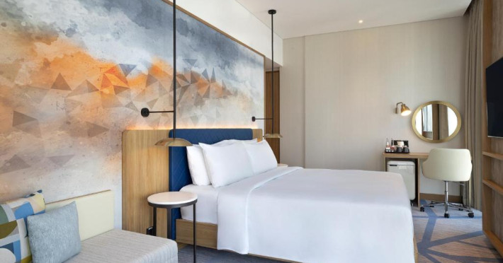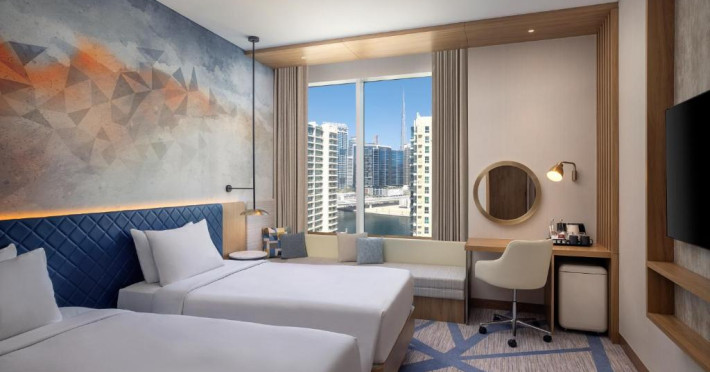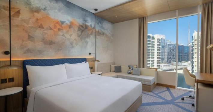Hilton Garden Inn Dubai Business Bay se află in Dubai, la 4,1 km de Fantana din Dubai, și pune la dispoziție o piscină in aer liber, un centru de fitness, un lounge comun și parcare privată gratuită. Acest hotel de 4 stele oferă WiFi gratuit, room-service și o recepție deschisă nonstop. Proprietatea oferă un bancomat, un serviciu de concierge și servicii de schimb valutar.